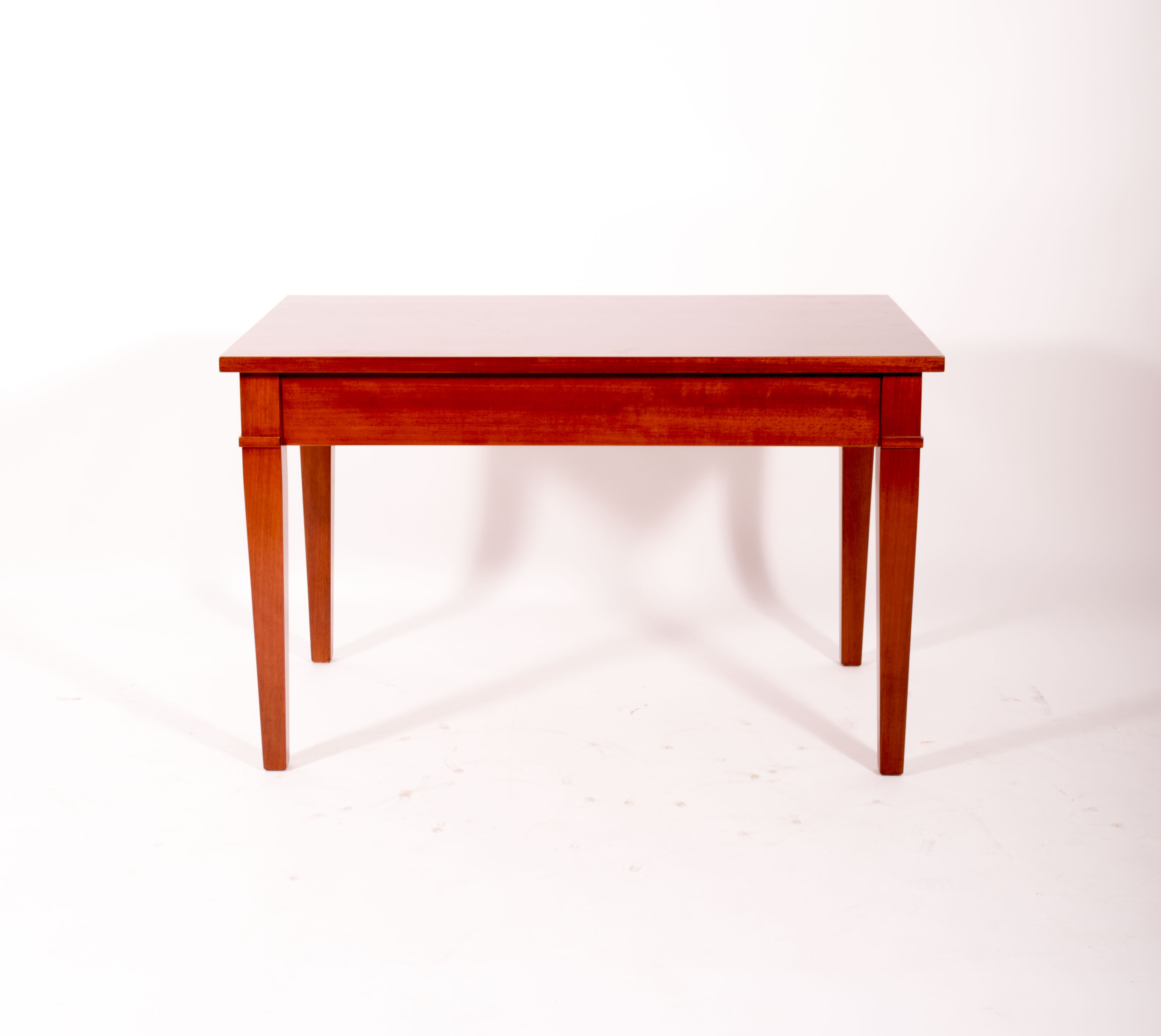 Wir fertigen Möbel nach Maß, in unterschiedlichen Holzarten und Oberflächen an. Dieser Beistelltisch wurde gemäß Kundenangaben gefertigt und farblich dem vorhandenem Interieur angepasst. In unserem Hauptgeschäft in Bad Honnef finden Sie eine grosse Auswahl an Beistellmöbel ( kleine Tische, Stühle, TV-Regale, uvm.) im Biedermeier Stil. Wir fertigen auch Esstische in unterschiedlichen Ausführungen, wie z.B. Ausziehtische, Tische mit Einlege- oder Einsteckplatten, ovale/runde und quadratische/rechteckige Tische in seidenmatten, hochglänzenden oder geölten Oberflächen.