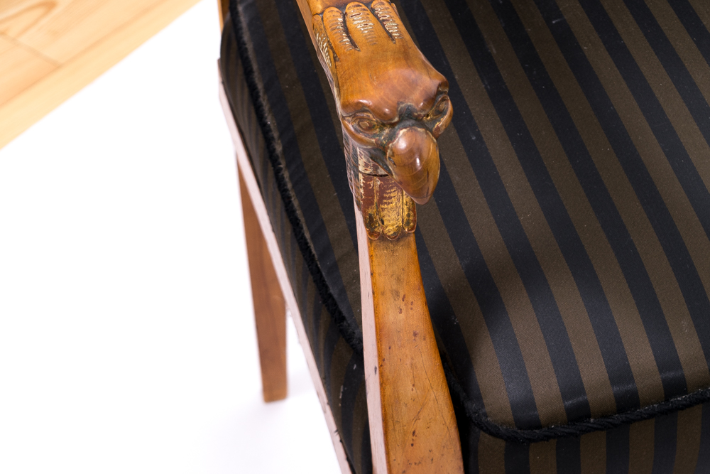 Zustand: gut erhaltener Zustand. Das Polster und der Stoffbezug wurden vor Jahren erneuert, eine Komplett-Restaurierung wäre jedoch zu empfehlen.