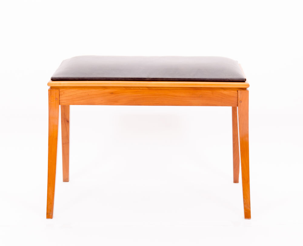 Biedermeier Klavierhocker/Bank, Oberösterreich, Kirschbaum massiv, äußerst seltenes Sitzmöbel, zwei Beine sind gerade und konisch zu laufend, zwei Beine sind leicht ausgestellt, die Sitzfläche ist aus Leder.
