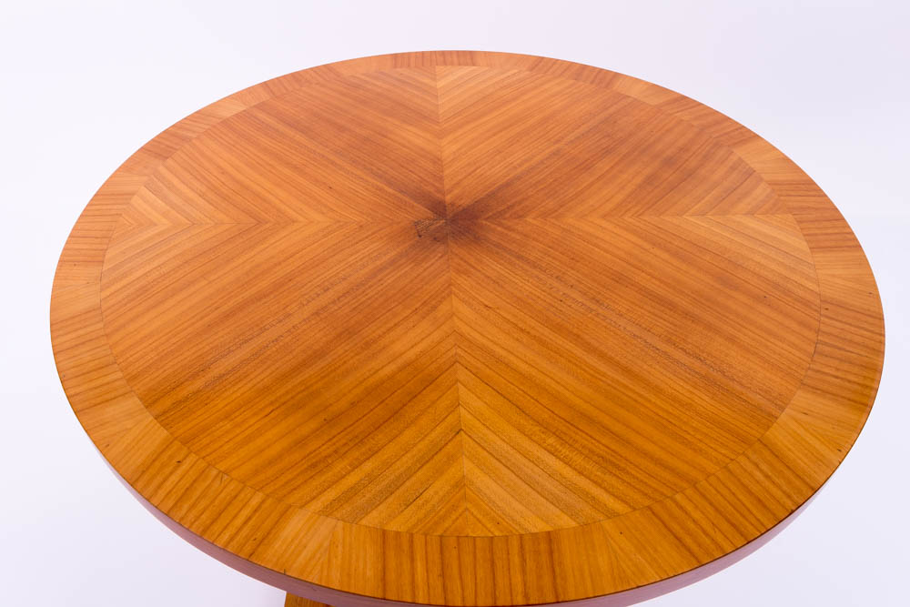 Zustand: bereits restaurierter Zustand, kleine Ergänzung des Furnieres auf Plattenmitte, welche den Charme und die Originalität der Möbel aus dieser Zeit unterstreicht.