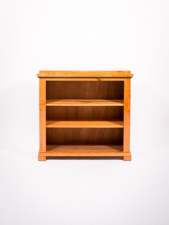 Regal im Biedermeier Stil, Oberfläche in Hochglanz gestaltet, die Vorderseite der Platte findet Abschluss mit einem angedeuteten Schinkeldach. Fertigung erfolgt nach Kundenwunsch in unterschiedlichen Holzarten, Oberflächen und Größen.